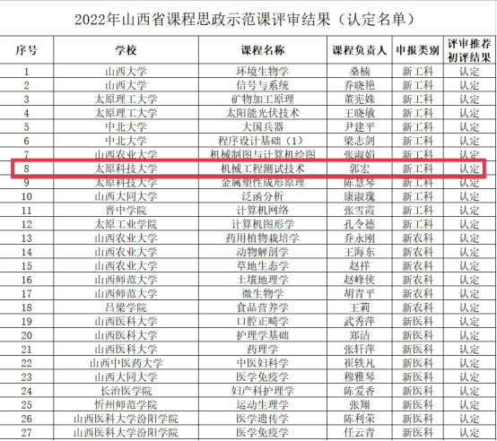 为全面推进我省高校课程思政高质量建设,省教育厅组织开展了课程思政示范课程组织推荐工作。我院郭宏老师的《机械工程测试技术》被评为认定课程。