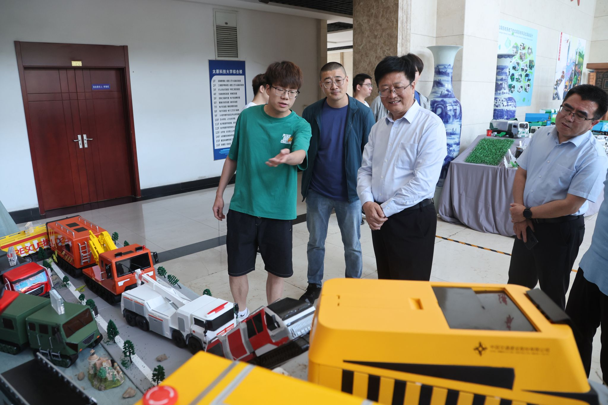 2023年5月30日下午,党委书记王志连到博学楼一楼大厅参观指导我院工业设计专业2019级毕业设计作品展。
