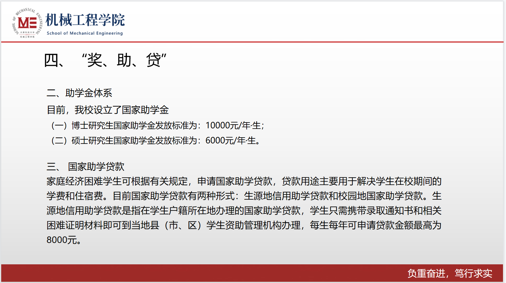 此外,刘老师还就奖助贷的设置、奖助贷政策、校园奖学金等问题为新生们进行了认真细致的讲解,鼓励学子们刻苦钻研、锐意进取、不断提升自身的综合素质,努力成长为德智体美劳全面发展的优秀研究生。