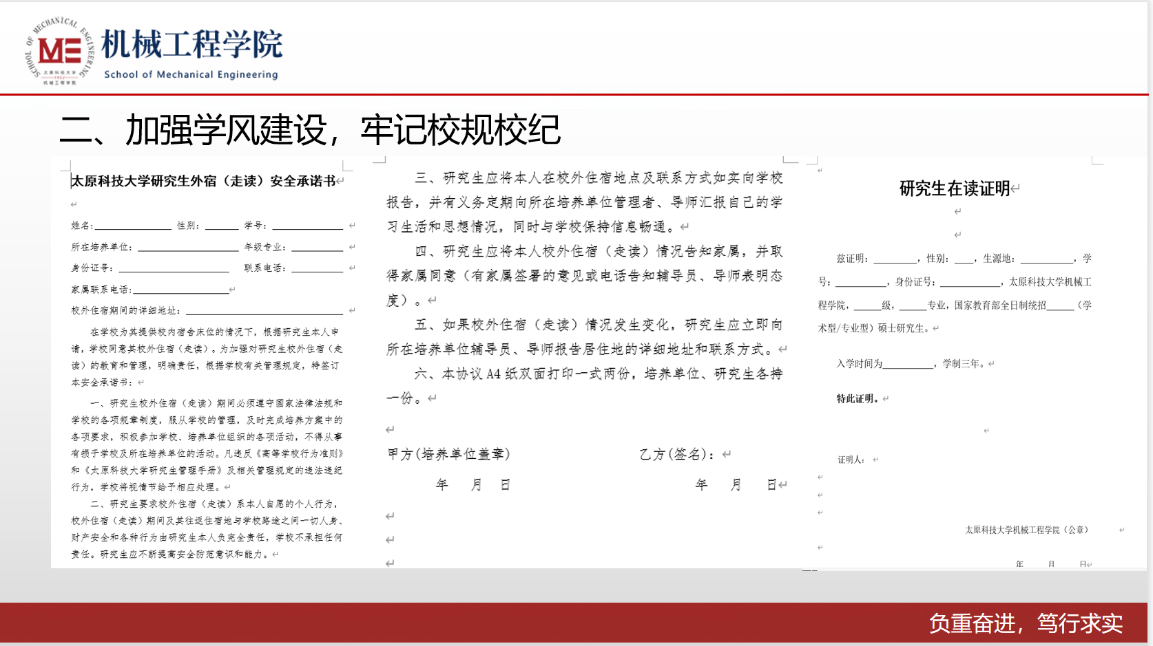 加强学风建设、牢记校规校纪是每位学生必须要时刻牢记的。校规校纪是学校为了维护良好的学习环境和秩序而制定的规定和纪律,是保证学生学习、成长和发展的基础,在校学生必须要明确校规校纪的重要性。要树立正确的学习态度,良好的学风建设离不开学生们的积极参与和付出;要发挥自觉自律的能力;要自觉抵制各种不良习气和不良行为,不参与作弊、考试舞弊等违规行为。只有大家齐心协力,共同营造积极向上的学习氛围和良好的学校形象,我们才能共同成长、取得更好的学习成果。