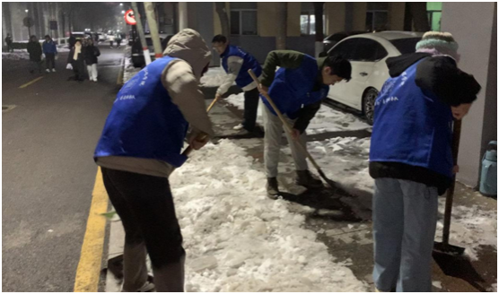 此次扫雪除冰活动,以“包片划区”形式做好分工,带领全院学生主动投身志愿服务,培养劳动精神,展现青年担当。