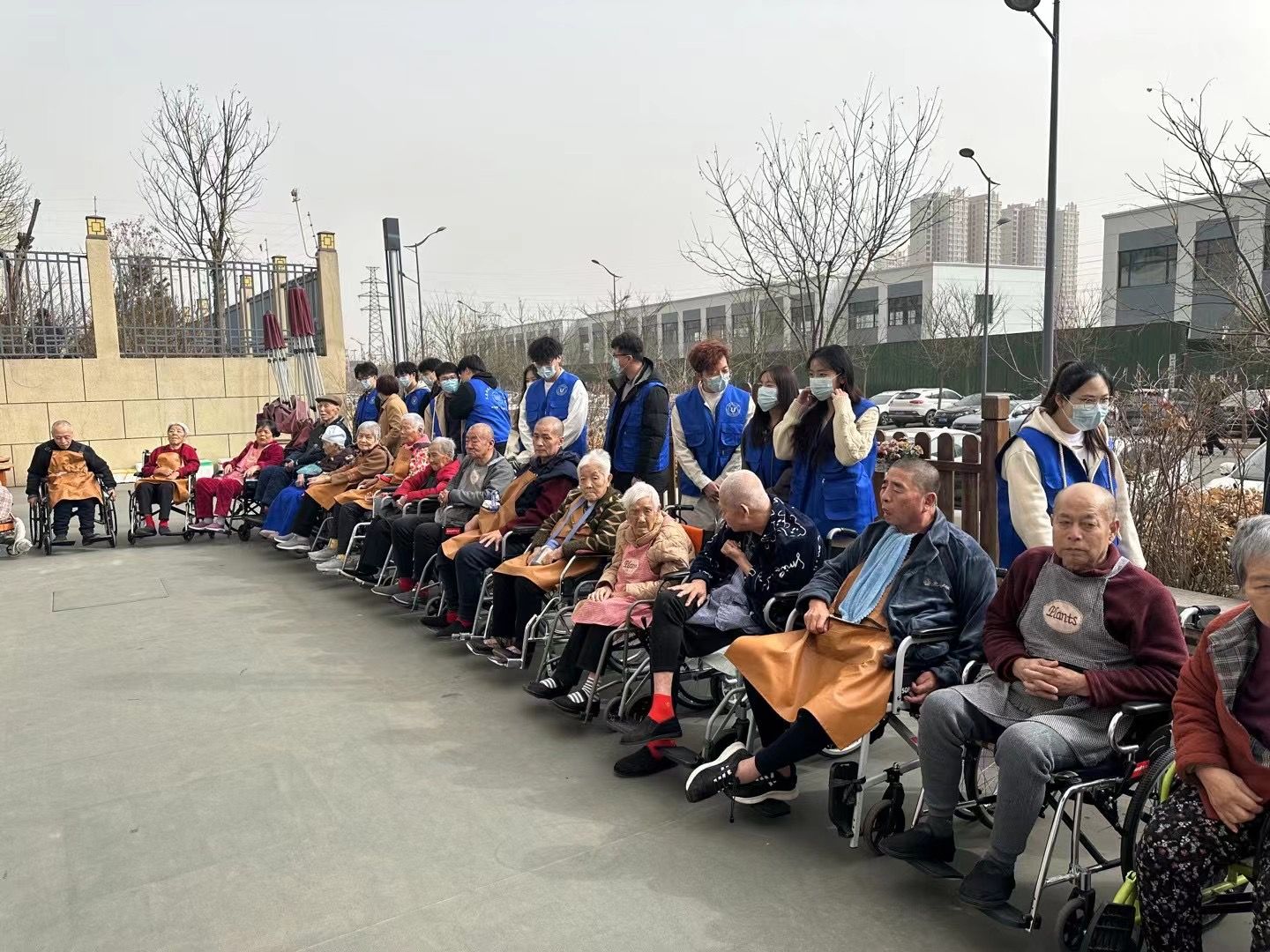 本次活动共召集了30多名志愿者,同学们个个身穿“小齿轮志愿服务队”的“蓝马甲”,带着生活慰问品,为老人们送去关爱与祝福。正值春光明媚,同学们纷纷推着轮椅,陪老人散步、晒太阳、放松身心。有的与老人们促膝围坐,面对面亲切交谈,认真倾听老人们在敬老院中的生活状况。有的为老人展示歌喉,唱起《精忠报国》,有的在院内带老人翩翩起舞,为老人们表演传统京剧《玉堂春》。