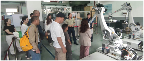在实验参观环节,来访人群认真聆听介绍,了解实验室各类先进机器人与科技成果,在不断提问中探索新知。同时,来访人群观摩了机器人智能分拣、缺陷识别、智能喷码、智能在线修磨等操作,现场的气氛活跃热烈。