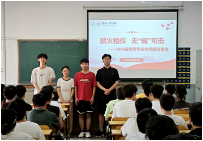 分享心成长,传递心力量。6月20日上午,我院在16楼举办“薪火相传,无‘械’可击”2024届优秀毕业生经验分享会,邀请考公、考研、保研及就业等优秀毕业生为学弟学妹们传经送宝,提供实际经验和建议,进一步发挥朋辈示范作用,帮助机械学子明确未来规划,鼓励同学们向身边的榜样看齐,敢于有梦,勇于追梦,争做新时代的奋进者。