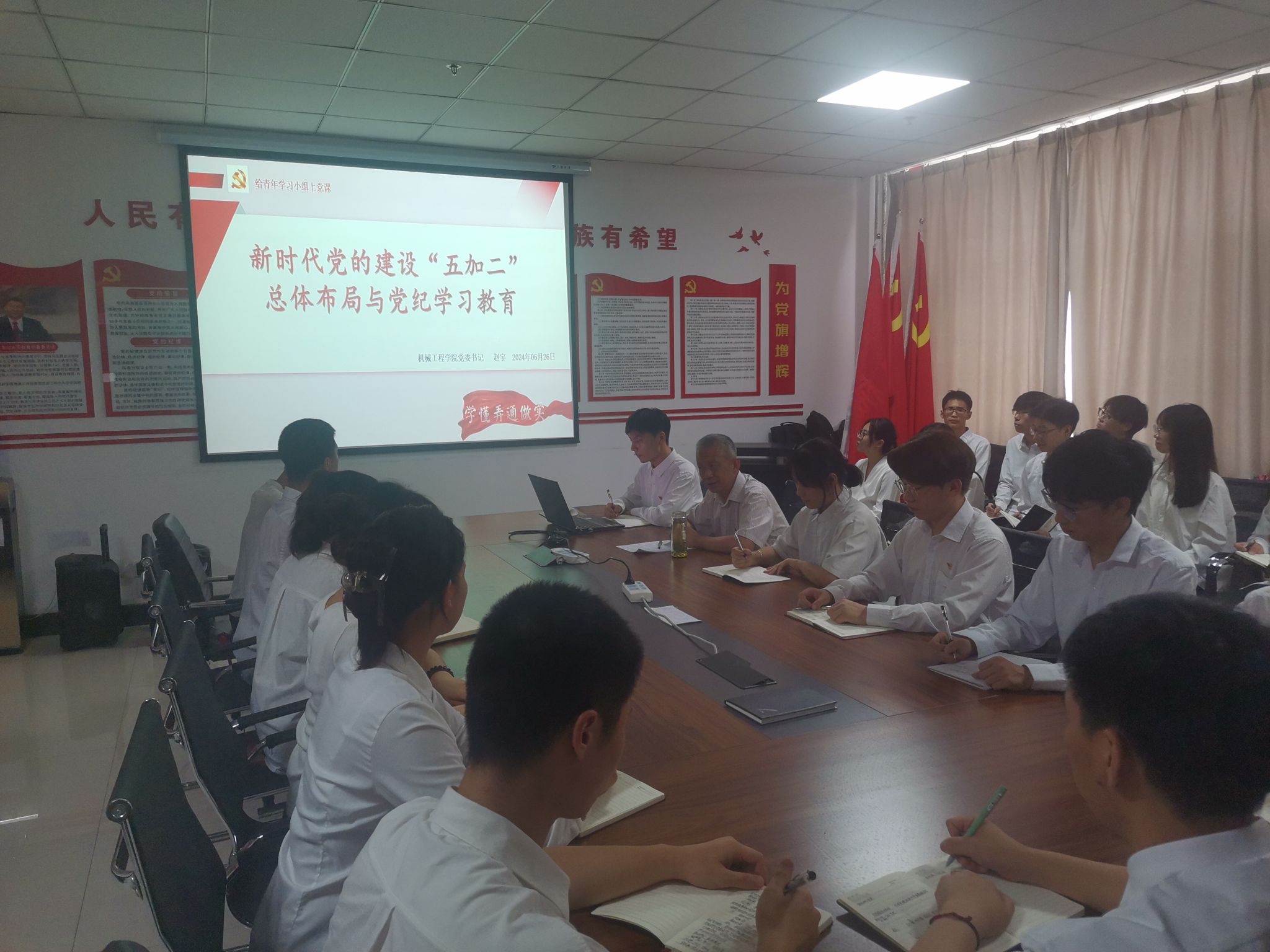 2024年6月26日下午,在党的103周年华诞到来之际,学院党委赵宇书记在太阳集团室为青年学生党员上《新时代党的建设“5+2”总体布局与党纪学习教育》专题党课。
