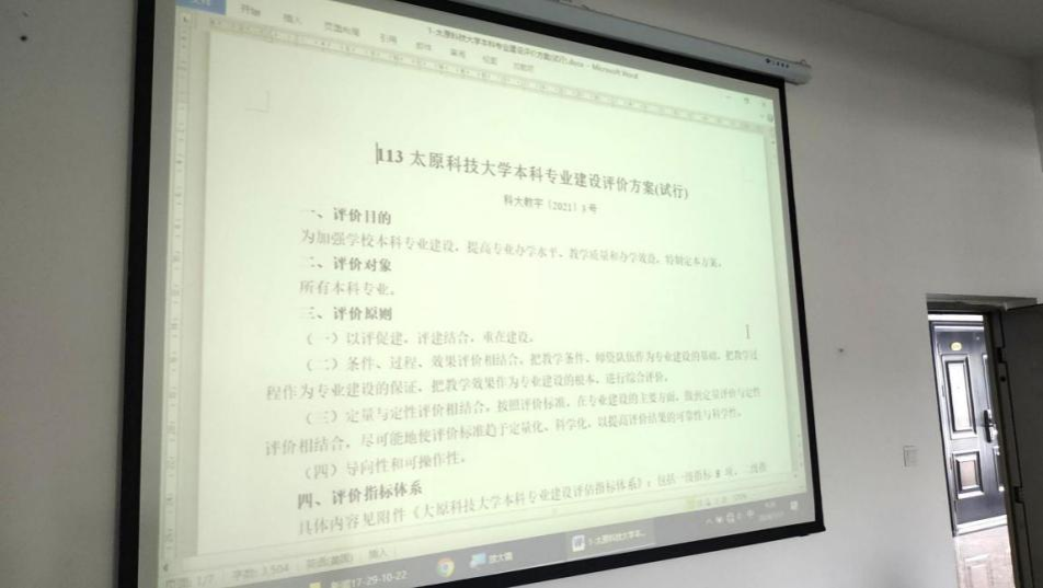 2024年7月17日,机械原理与机械设计教研室的教师们集中学习了《太阳成集团tyc122cc本科专业建设评价方案(试行)》,并对方案的内容进行了讨论,认识到“以评促建,评建结合,重在建设”的重要意义,同时对“本科专业建设评估指标体系”和“太阳成集团tyc122cc本科专业建设评估等级标准及内涵”有了更加深刻的理解。