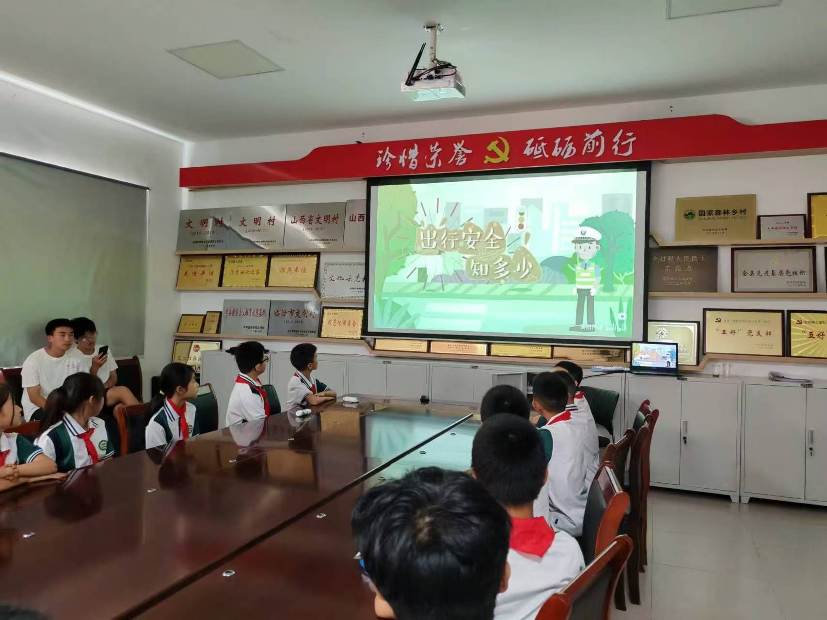 在山西吉美鲜生物科技有限公司,实践队员们深入苹果冻干生产线,观摩了工人们将苹果清洗、削皮、去核、到最终制成香脆的苹果冻干的全过程。大家了解到这条生产线不仅减小了当地果农销售果产的压力,同时也将吉县苹果以健康零食的形式呈送到了老百姓的餐桌上。在壶口瀑布旅游服务区,队员们开展了垃圾捡拾、垃圾分类等系列志愿服务,为绿色生态和环境整治尽一份绵薄之力。在太度村小学,实践队队员开展“七彩假期”互助教学活动,为小学阶段的儿童进行了关于安全出行、防诈反诈的宣讲课程,通过发放益智玩具,激发孩子们与队员们互动交流的积极性。