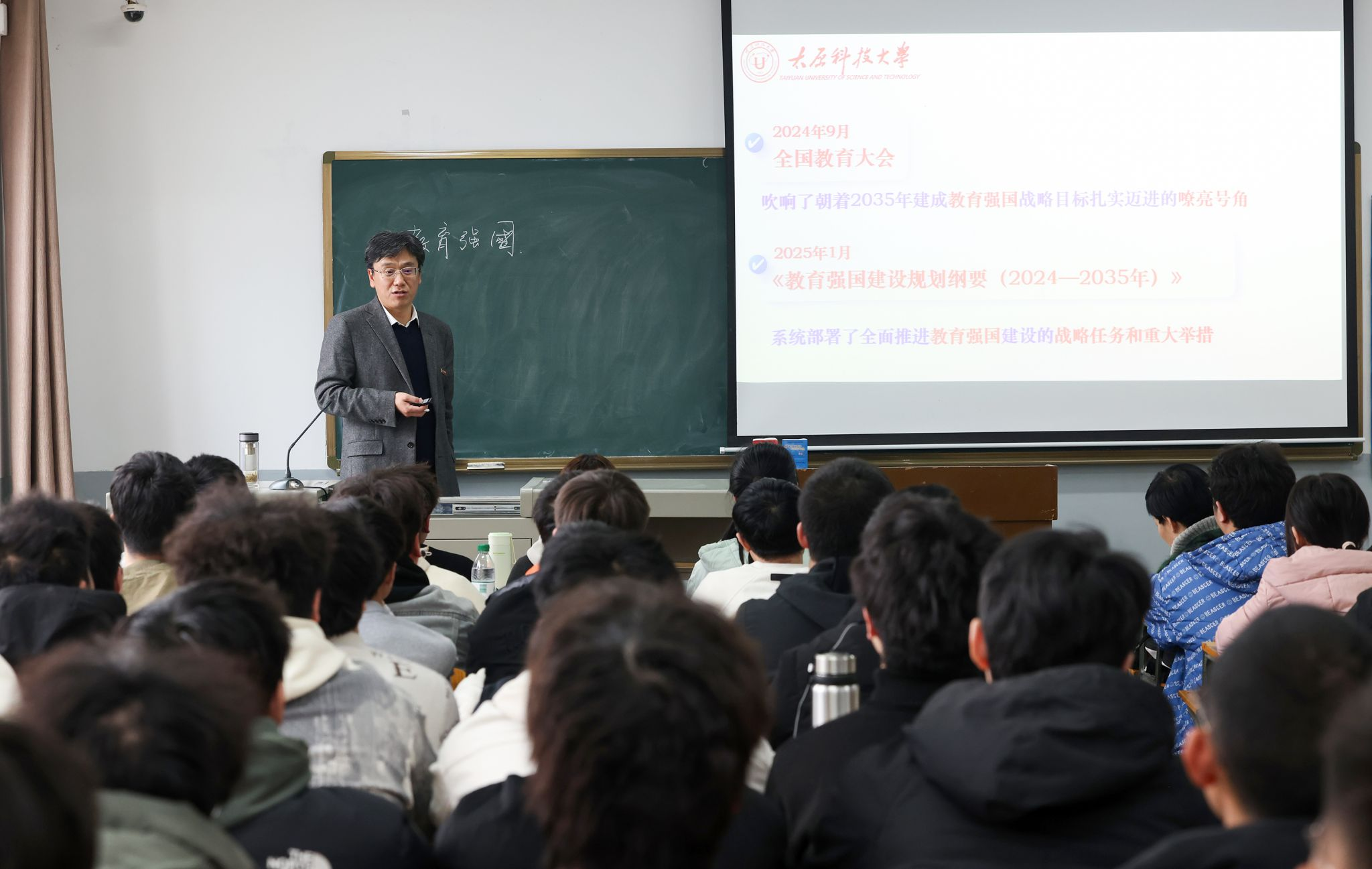 在讲授过程中,他对同学们深情寄语,期望大家把爱国之情、报国之志融入强国建设,以青春之骨气和“功成不必在我,功成必定有我”的决心勇担强国建设重任;牢记教育强国使命,努力锤炼过硬本领,塑造“理想坚定,信念执着,勇于开拓,顽强拼搏”的优秀品质;鼓励同学们勇立时代潮头,争做时代先锋,以敢为人先、勇于突破的创新精神,为教育强国建设添砖加瓦。